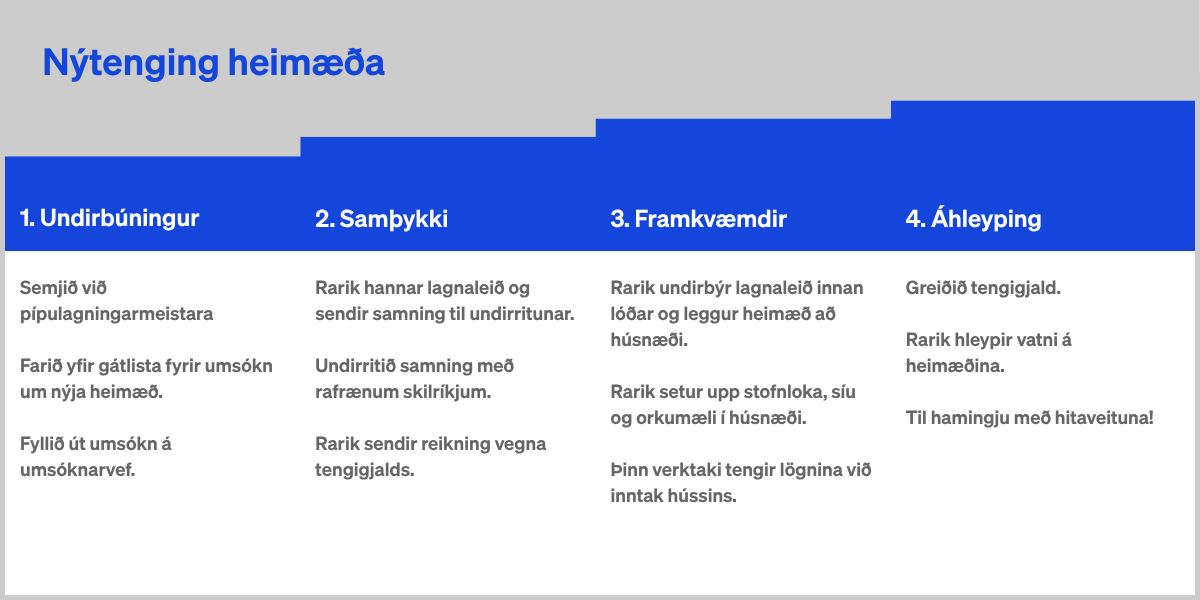 Mikilvægt er að lesa gátlista fyrir nýtengingu heimæðar áður en umsókn er fyllt út.
