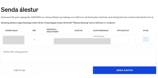 4. Sláðu inn í álestrarviðmótið á mínum síðum, töluna á skjánum (þegar E4 sést efst í hægra horninu). Enn betra er að taka mynd og skila með sem viðhengi. Myndin hér sýnir álestrarviðmótið: